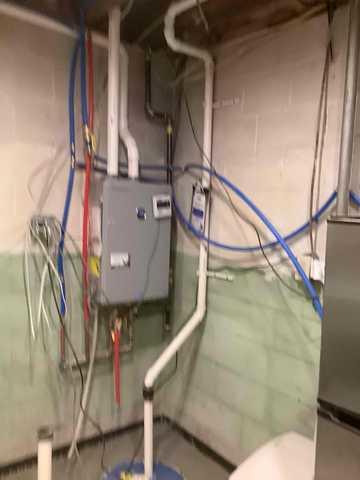 To control the water that would seep in from the egress window, we installed a well duct to guide that seepage into a perimeter drain. This 33 ft drainage system, WaterGuard, was set into the floor and created a channel to a SuperSump pump.