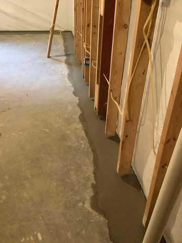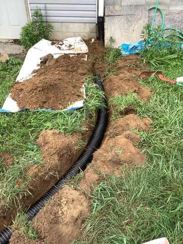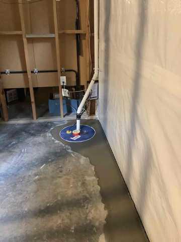 In order to collect seepage from the north east corner of the foundation, we installed a WaterGuard drainage system with a ground water collecting SuperSump pump. To help guide and flash water down the foundation, we applied a layer of CleanSpace to the exterior walls.
