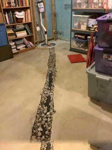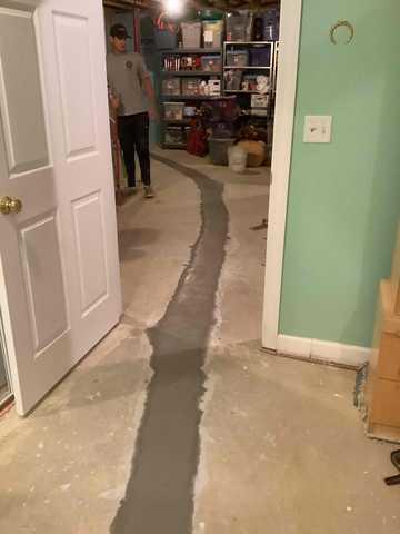 The installation of a Lateral Drain through the center of the floor will help additional water pressure through the floor, and pull it away from the perimeter. The WaterGuard solution is designed to control perimeter water from the cove joint and redirect that water to a sump pit.