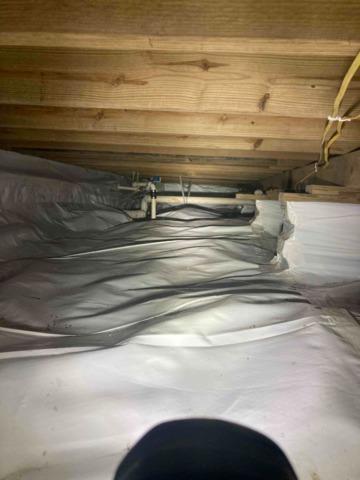 This crawlspace was waterproofed with Drain Tile and a SuperSump pump. We then covered the walls and floors with CleanSpace encapsulation to control moisture and humidity levels throughout the space.